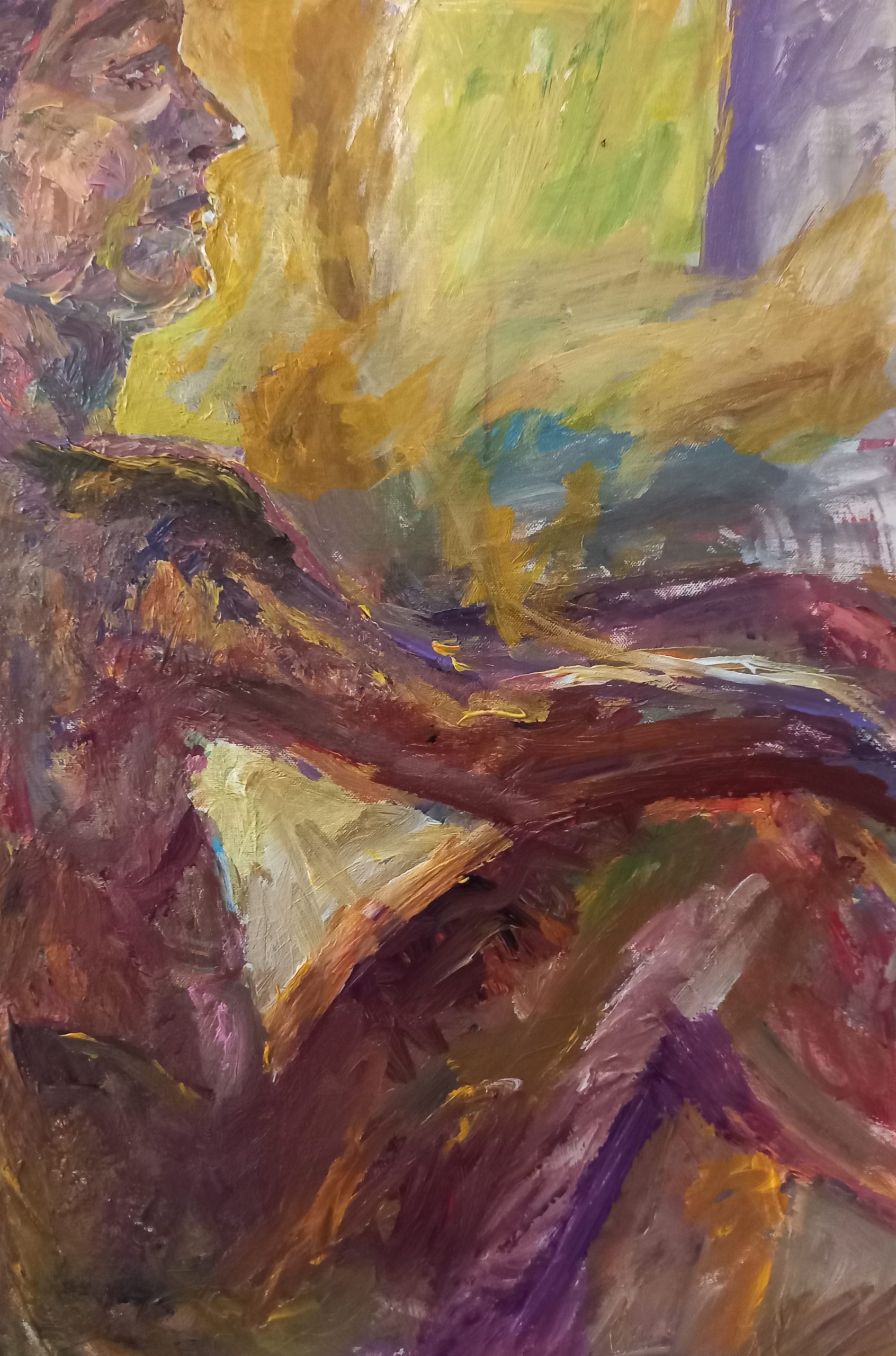 A very expressive, abstracted artwork expressing the inner world of the gazer. Exciting brushstrokes are used showing movement, and suggesting activity beyond the edges of the canvas.