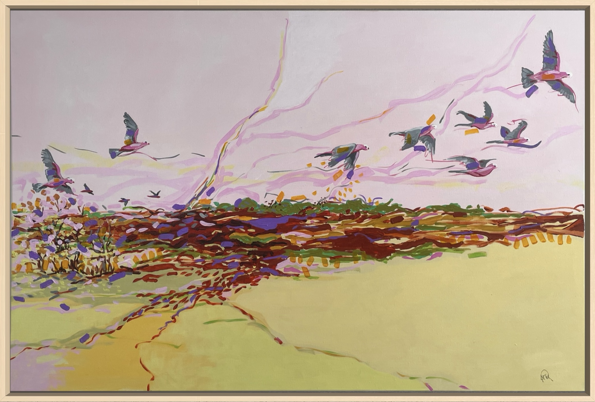 I photographed these flying galahs as we drove up the Western Australia coast. The colours in this  landscape are amazing …’Wings of Wonder’ is my attempt to reproduce some of the magic!