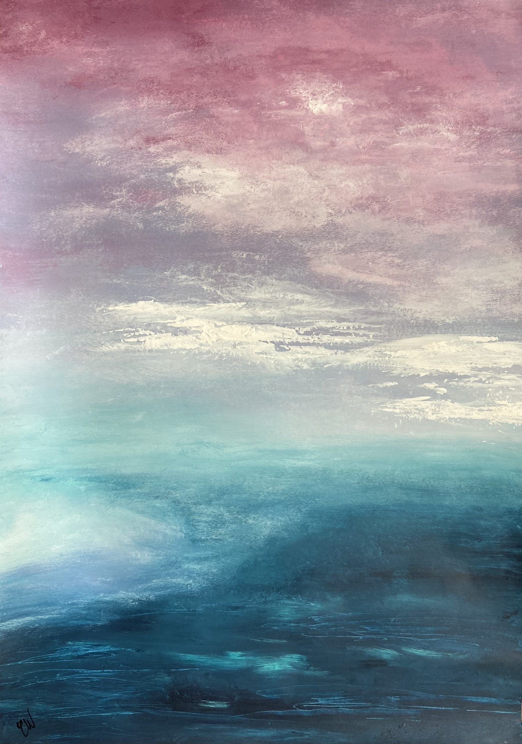 A beautiful abstract seascape/landscape painting. 59.4 x 42 cm (A2 size). Acrylic on paper. Frame not included. Requires framing.