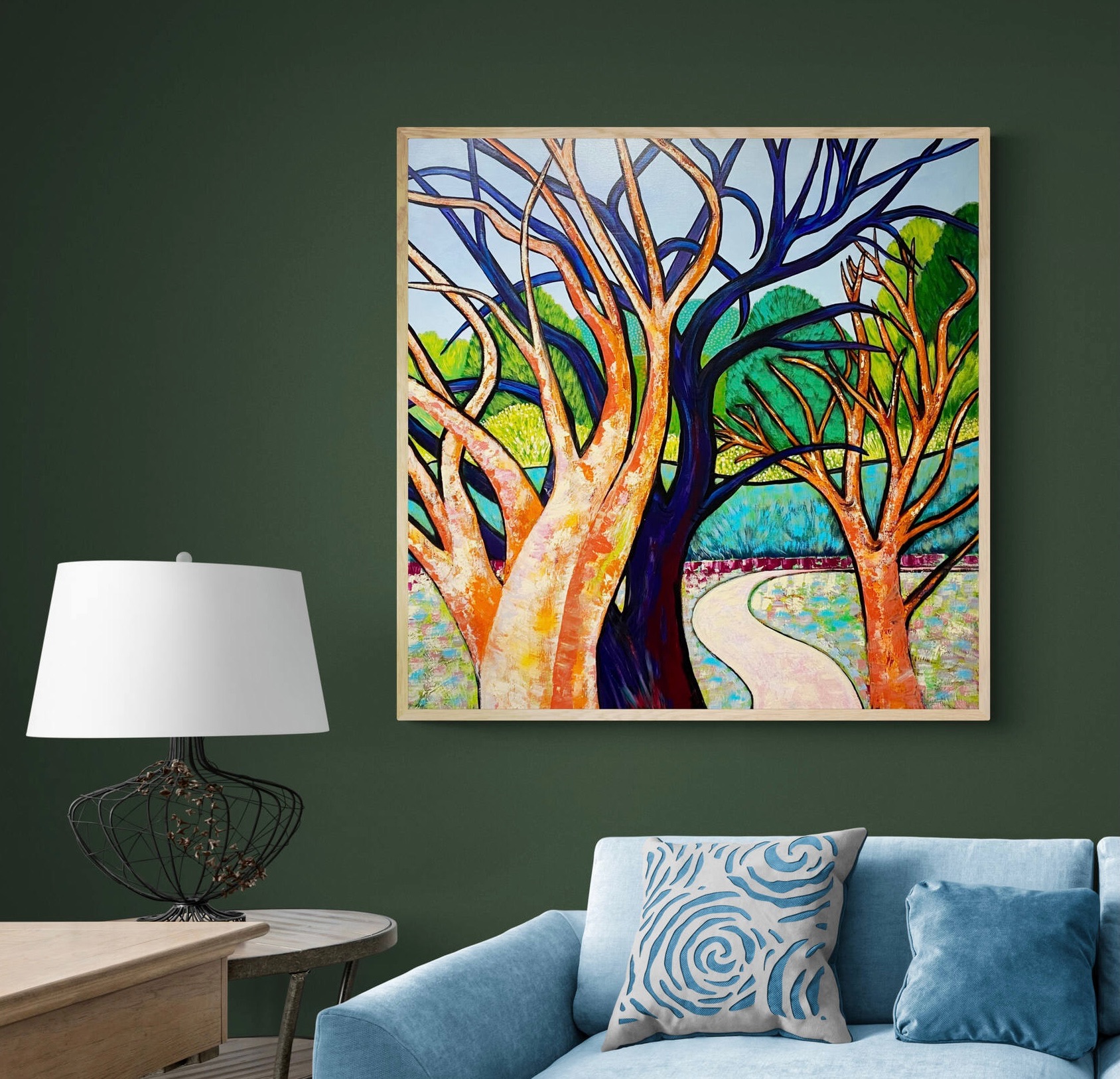 This original artwork is inspired by walking the sunlit parklands when some of the beautiful old trees have shed their leaves for winter.