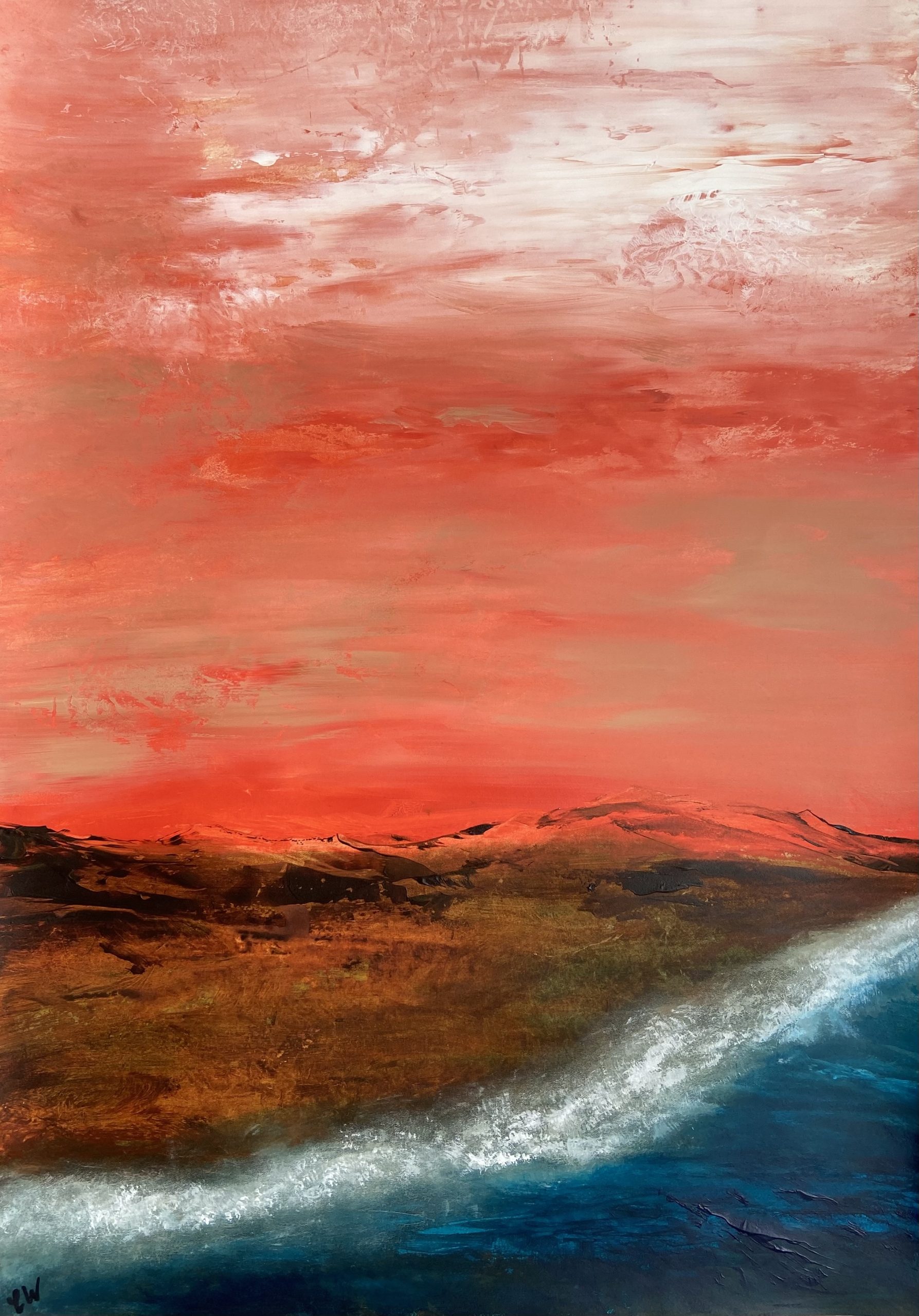 A beautiful abstract landscape/seascape painting. 59.4 x 42 cm (A2 size). Acrylic on paper. Frame not included. Requires framing.