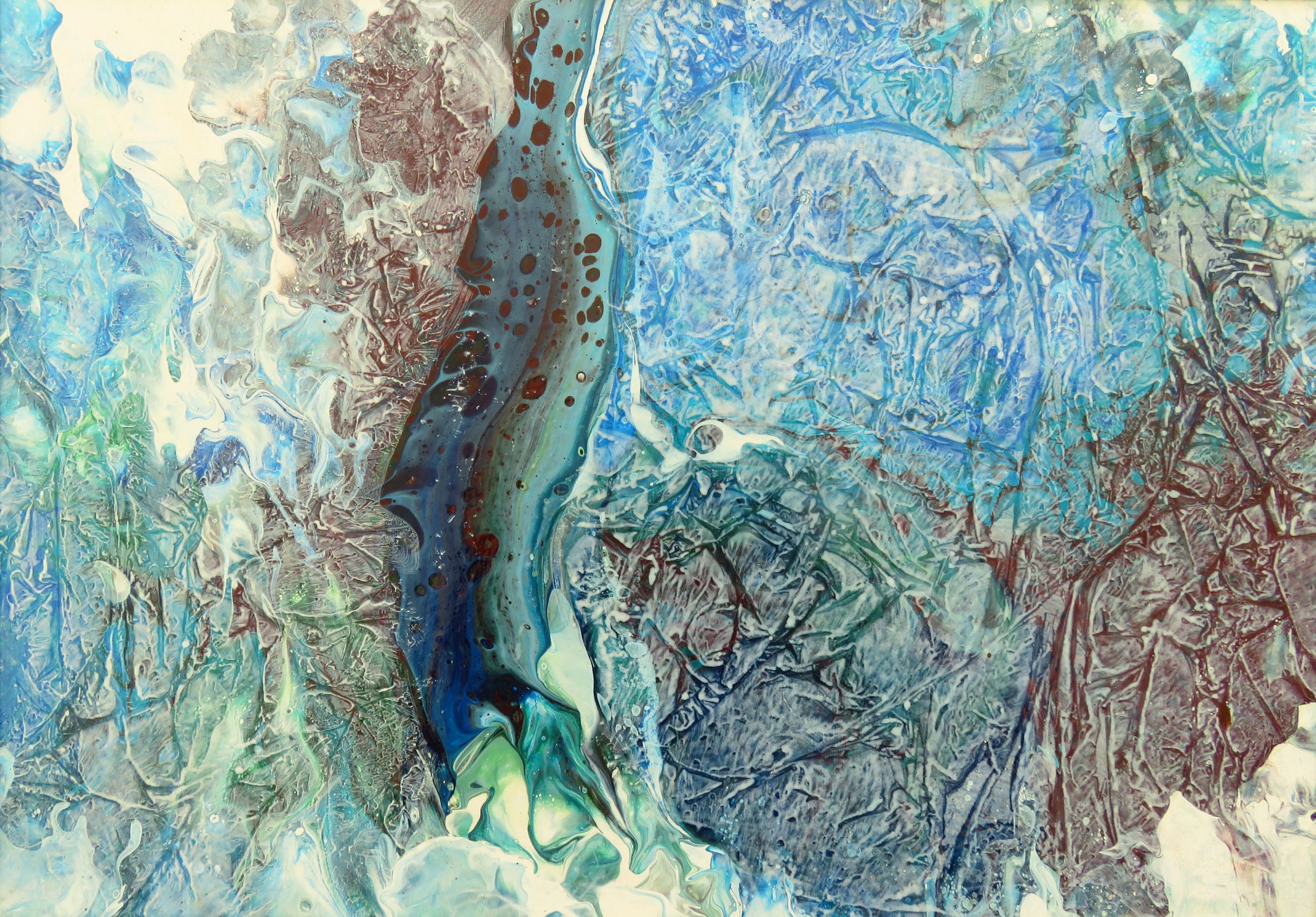 The result of this pour reminded me of an aerial view of the frost covered landscape in the rugged Canadian wilderness with its frozen lakes and streams, so I decided to call this painting ‘Winter in Canada’. As it is an abstract version it can be hung in any direction, whichever style you prefer.