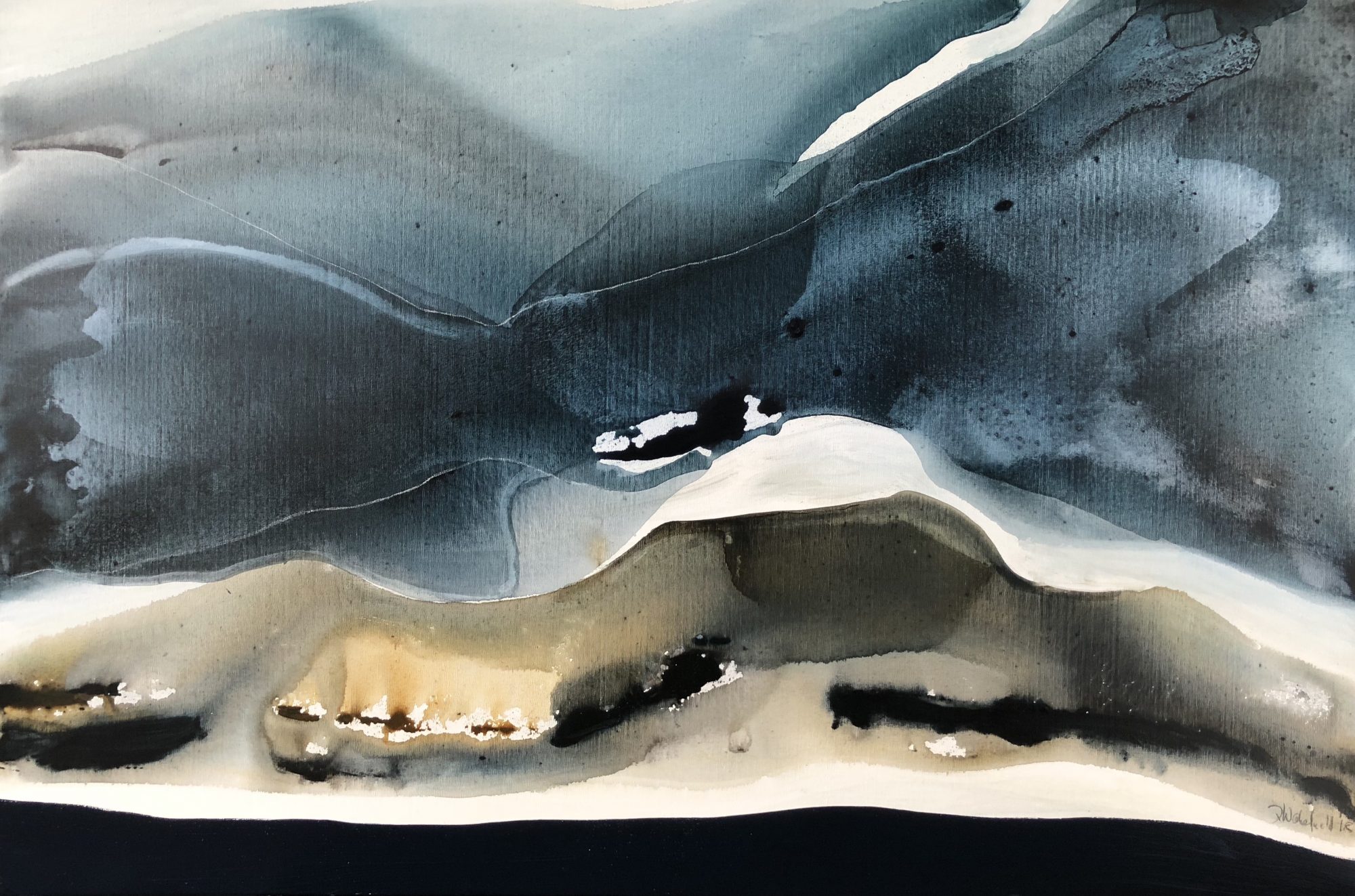 Winter Solstice is inspired by the light, the colours and the natural beauty of the Noosa region of Australia. What I love most about Noosa is the interplay of light. From the oceans to the clouds, to the river estuaries and the hinterland, this canvas unfolds before me every day and finds expression in my paintings.