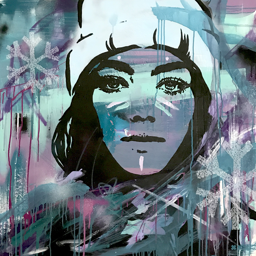 Acrylic, spray paint, ink and nikko on double thick canvas