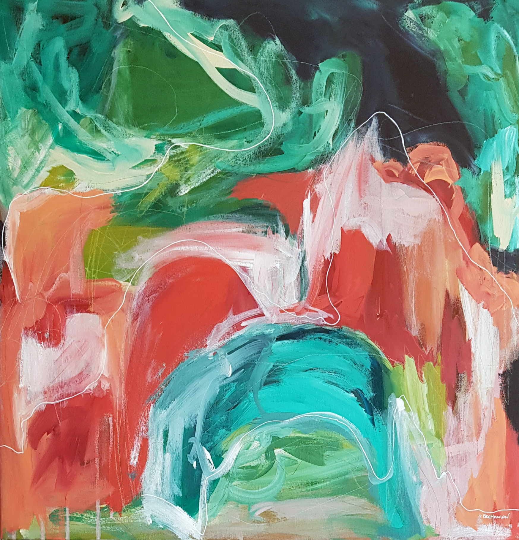 Wish We’d Gone Away – My art practice is an intuitive process using many layers, mark making and mixed media tools to create my abstract pieces. I strive to be fluid and spontaneous in my work and love finding the little details in a painting that for me create joy.