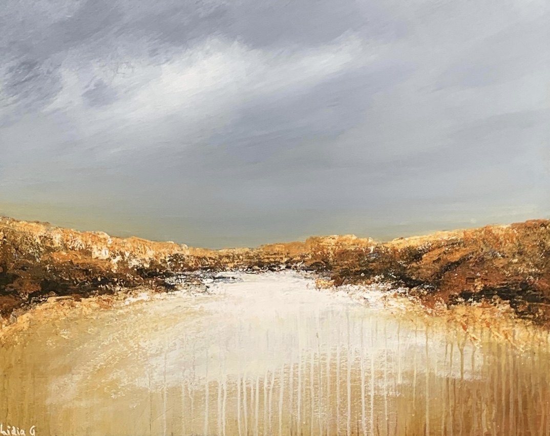 Inspired by the incredible diversity of the Australian landscape from its rugged coastlines, snow-capped mountains and the idiosyncratic landscape of the sandy desert with its sun baked monoliths and rainforests. The edges of the painting are done in Lamp Black and comes with professional wire hanger and a Certificate of Authenticity.