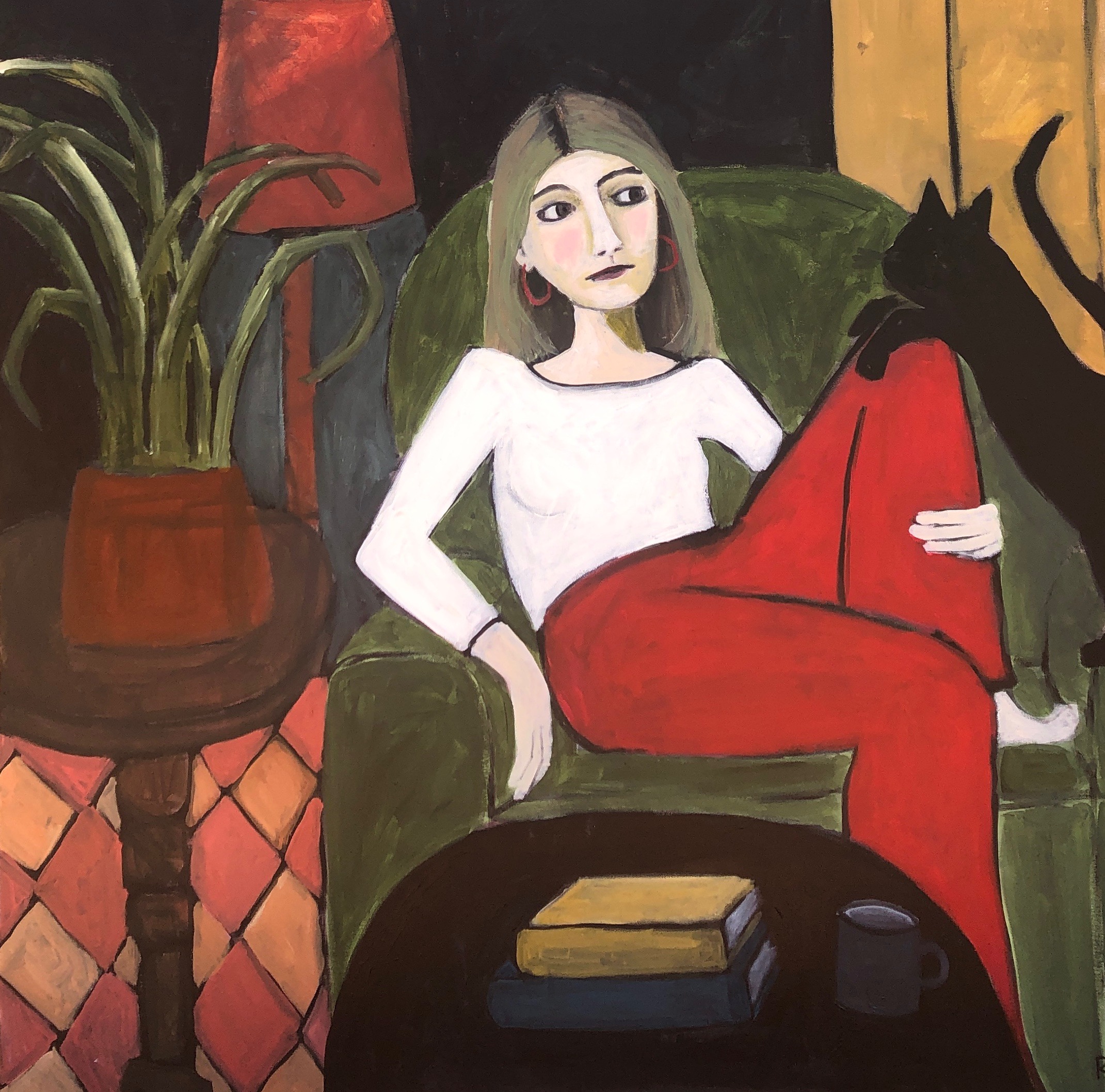 I hope that my art captures something true about the world — the beauty of the ordinary, the complexity of human interaction, the intensity of an emotion. My art is largely figurative, people and things, and I attempt to represent what I see and experience with a sense of appreciation and humour. My work is often colourful and illustrative and can tend towards the naive. It frequently has elements of fantasy about it. I like my art to tell a story, to prompt the viewer to think ‘I know exactly how that feels,’ or to inspire a sense of joy or longing or nostalgia.