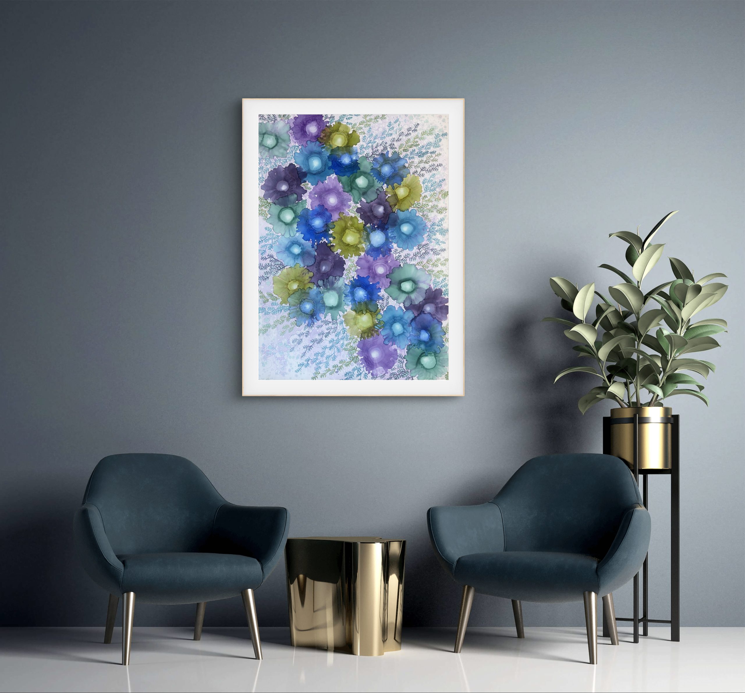 Original unframed 65 cm x 91 cm Alcohol ink on yupo paper sealed with high grade varnish and UV spray.