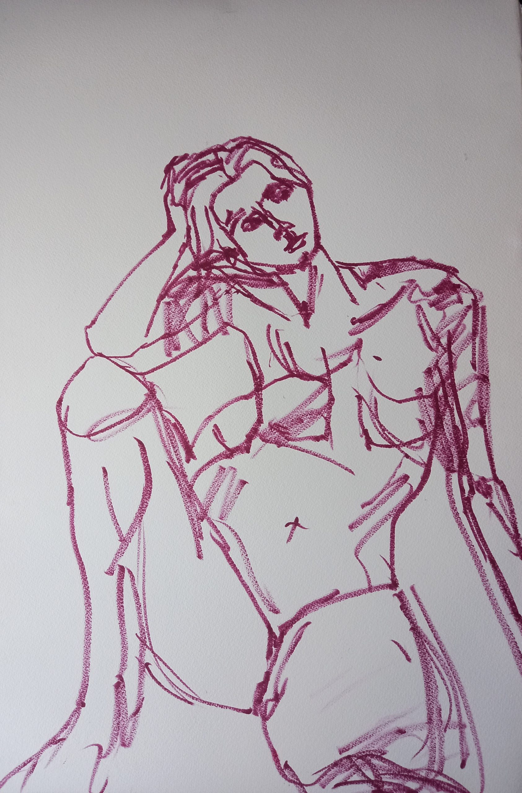 Expressive, emotional drawing capturing the mood, gesture and posture. Atmospheric strong linear drawing that engages the viewer.