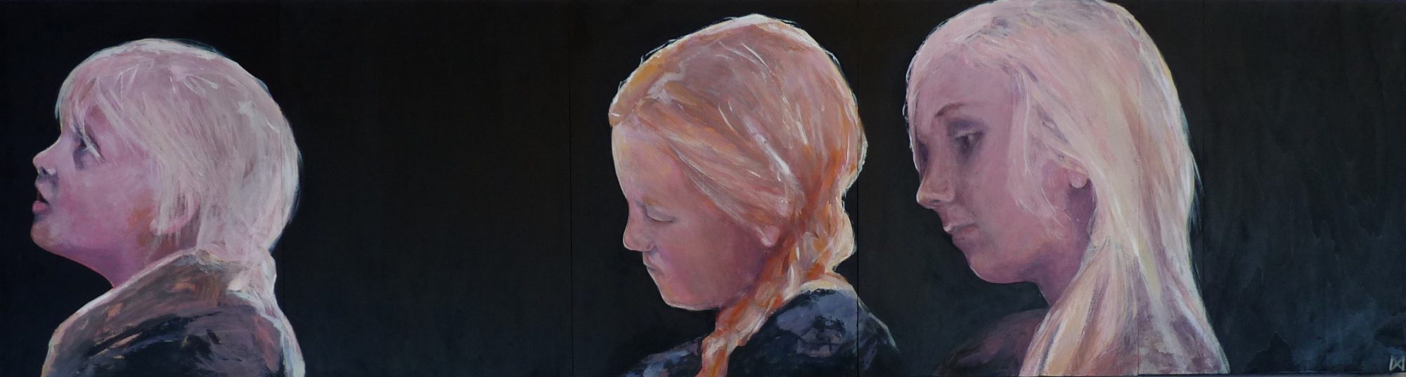 Wonder evokes the magic of silence in the sacred space. Perhaps the children are in a temple or at the theatre. Wherever they are, they are deeply moved by the atmosphere of place or occasion. It is also a portrait of three sisters; the images were sourced from three separate photographs.
