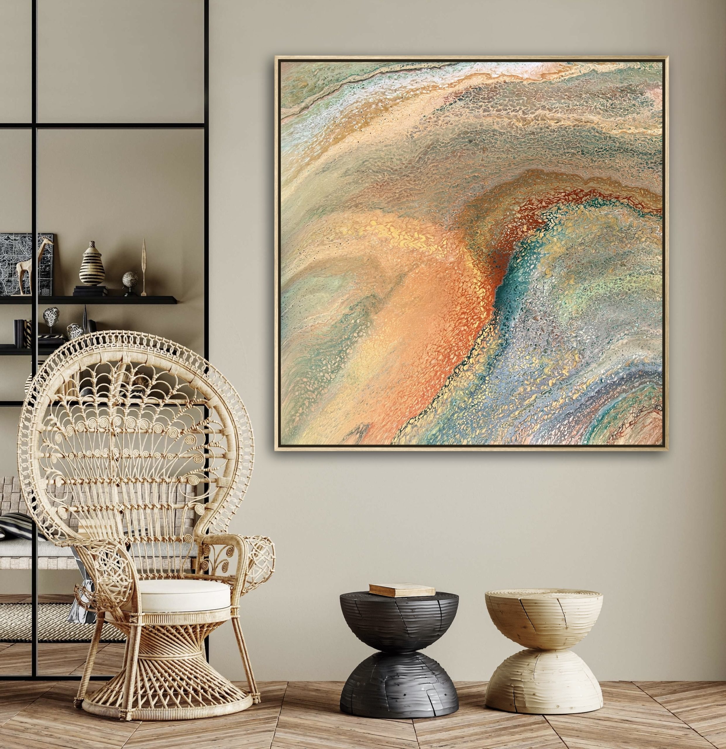 ‘In situ’ photos have been included to help with visualisation of the artwork in your home. In situ photos provided were created using the ArtStage app and may not be perfectly to scale. This being said, every effort has been made to represent the size of the art accurately but please read the dimensions of the artwork to ensure it fits your space perfectly. Where provided, photos of framed art are for illustrative purposes only.