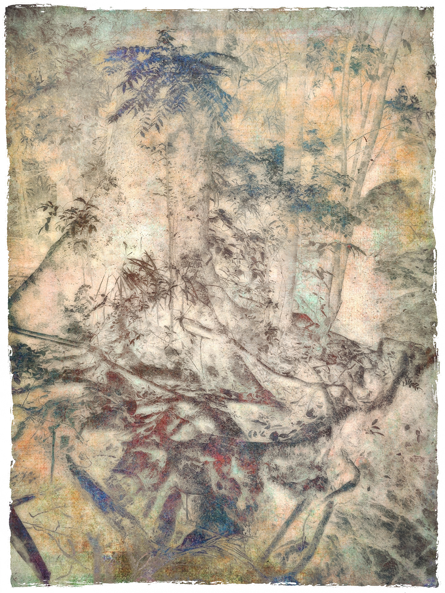 Unique blending method has created a soft, watercolour-like image from an original photograph, deep in the rainforest.