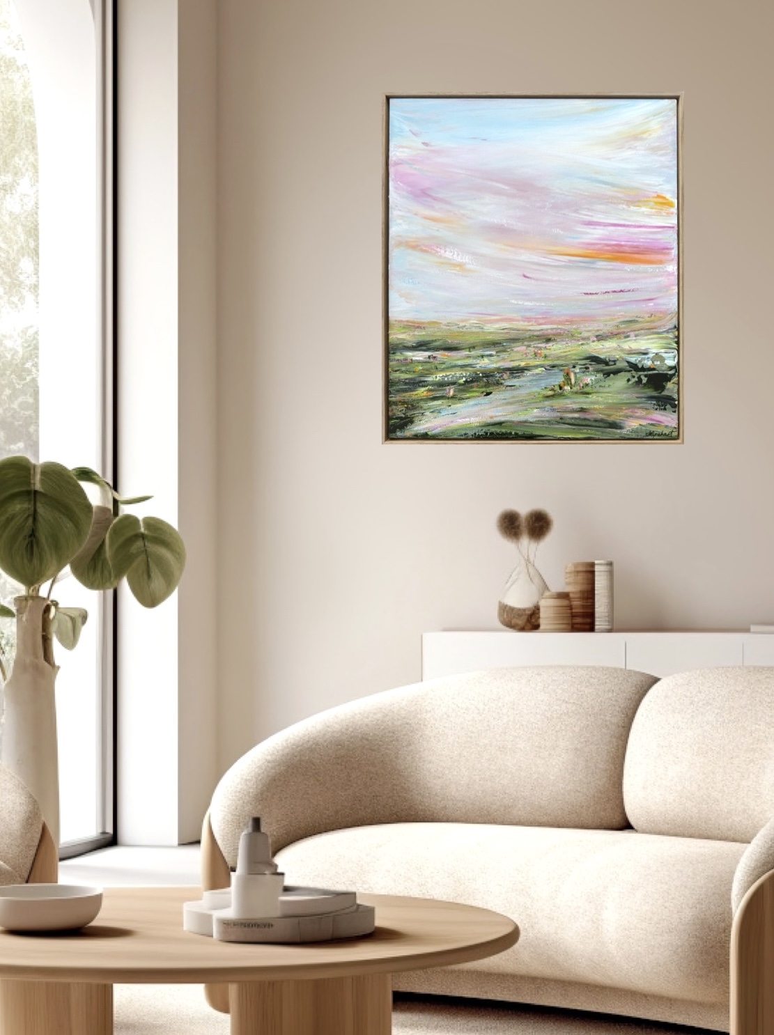 NB: While every effort is made to capture the true colours and details of my artwork, every screen is different and art viewed online does not do my work justice. Slight differences may be evident between a screen image and the true tone and textures of my work, which is more vivid and beautiful in reality. Scale may also be slightly off due to the insitu art app used, so please ensure you measure your space.