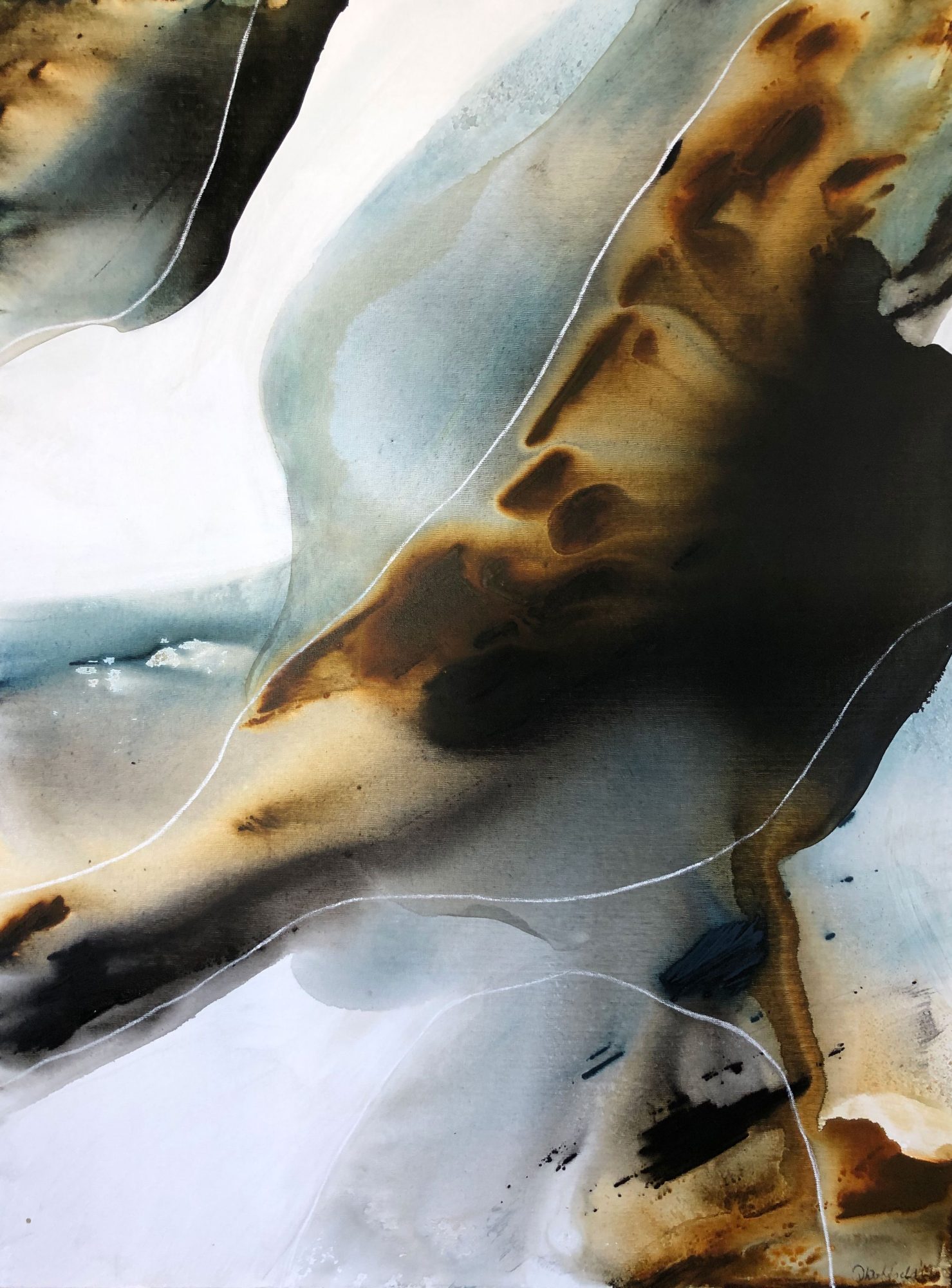 Woodland 1 is inspired by the light, the colours and the natural beauty of the Noosa region of Australia. “What I love most about Noosa is the interplay of light. From the oceans to the clouds, to the river estuaries and the hinterland, this canvas unfolds before me every day and finds expression in my paintings”.