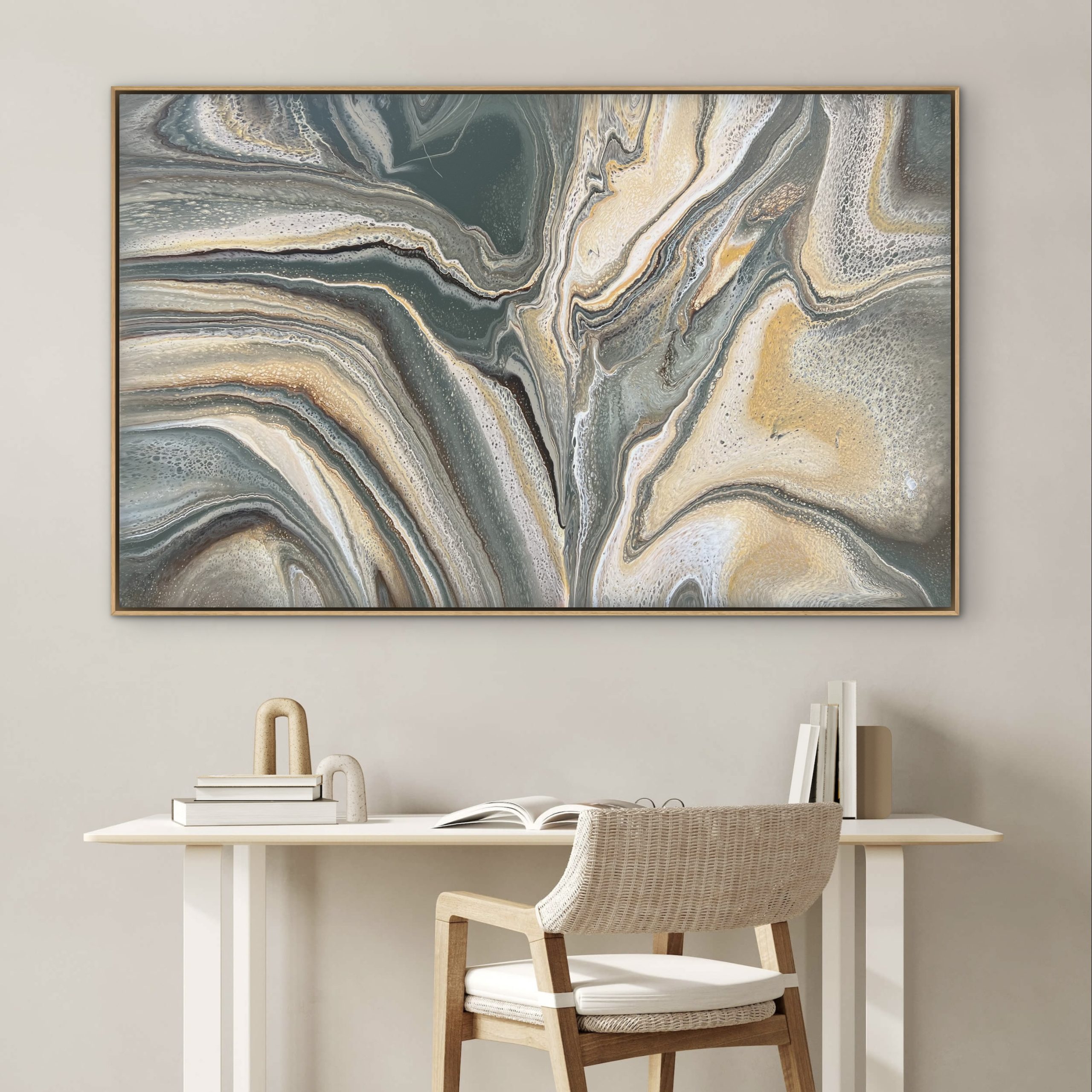 These paintings are created on a 40mm frame wrapped in the highest quality canvas. I use thinners, Surfactants and Synthetic Polymers to create pieces inspired by aerials, marble, granite and seascapes. The sheer number of variables in each painting makes every piece one of a kind and can never be replicated. Having said that, If this piece caught your eye but isn’t quite the right size or colour/s please reach out via help@artloversaustralia.com.au and we can discuss the possibility of doing a commission in this vein,