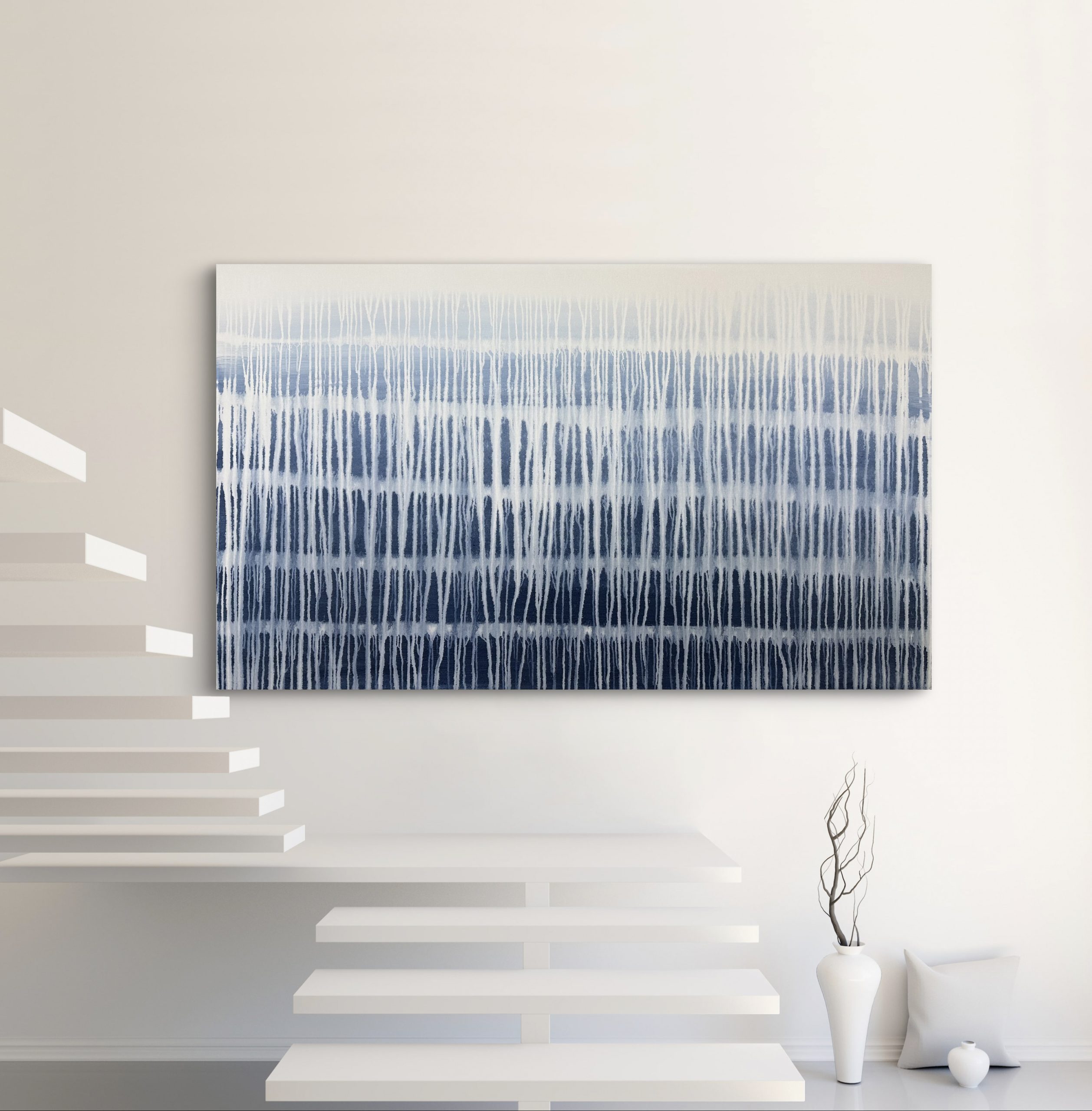 This painting is a part of my ‘Shbori’ collection. A striking abstract in the shades of blue and indigo.