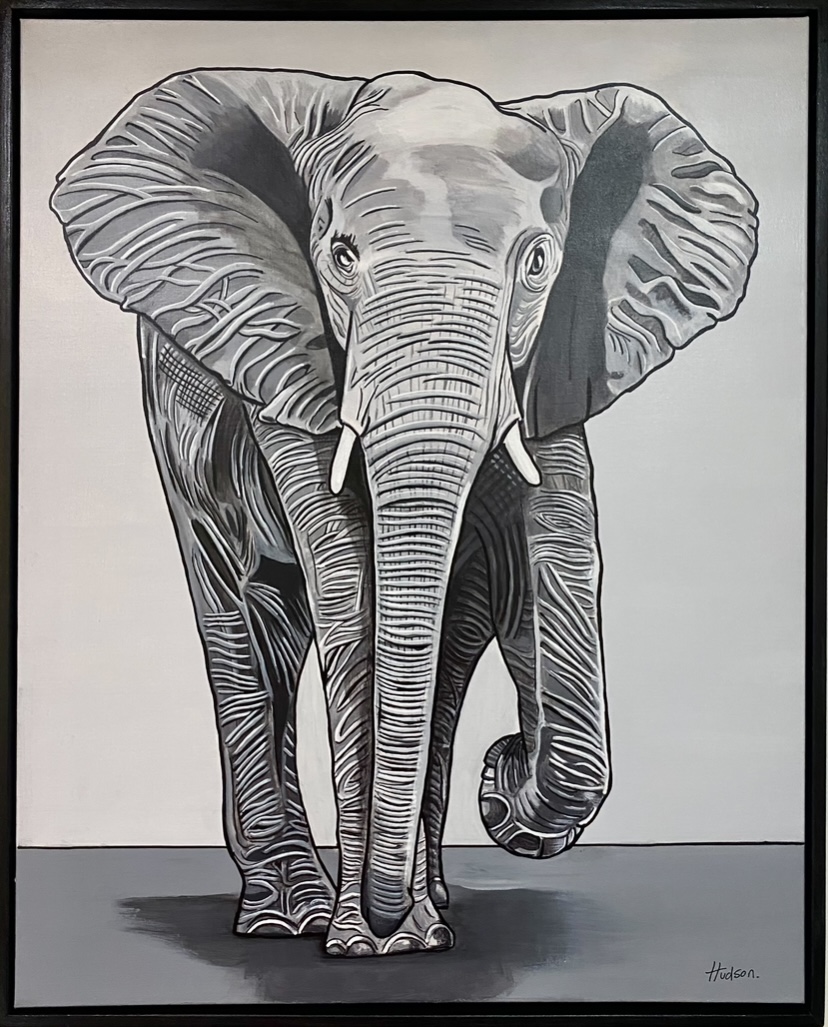 Wrinkles of Wisdom by Elaine Hudson – This black and white painting of an elephant going for a stroll, would suit any home or office. The detail of the elephants wrinkles shows the viewer the intensity of the wrinkles and just how textured the elephants skin is.
