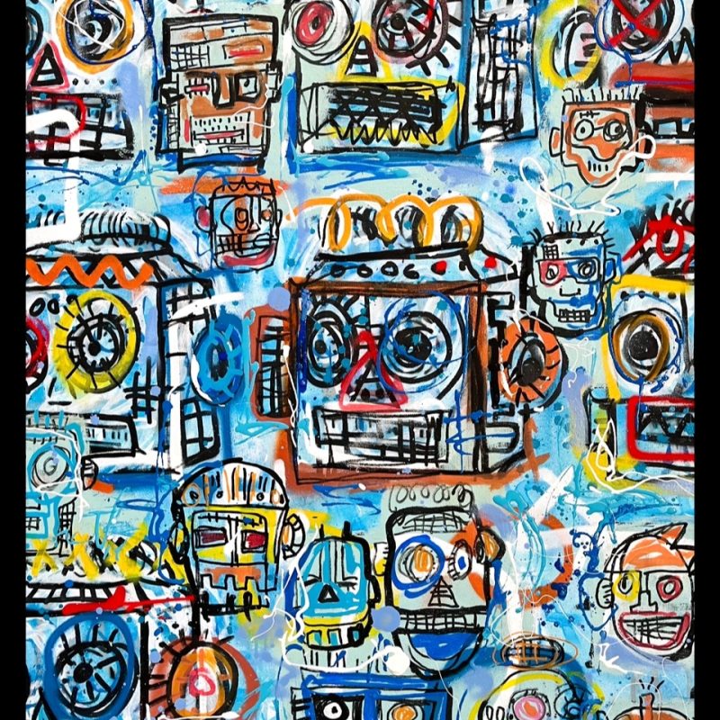 Original artwork using acrylic paints applied with trowel and brush on to stretched canvas. (Unframed)