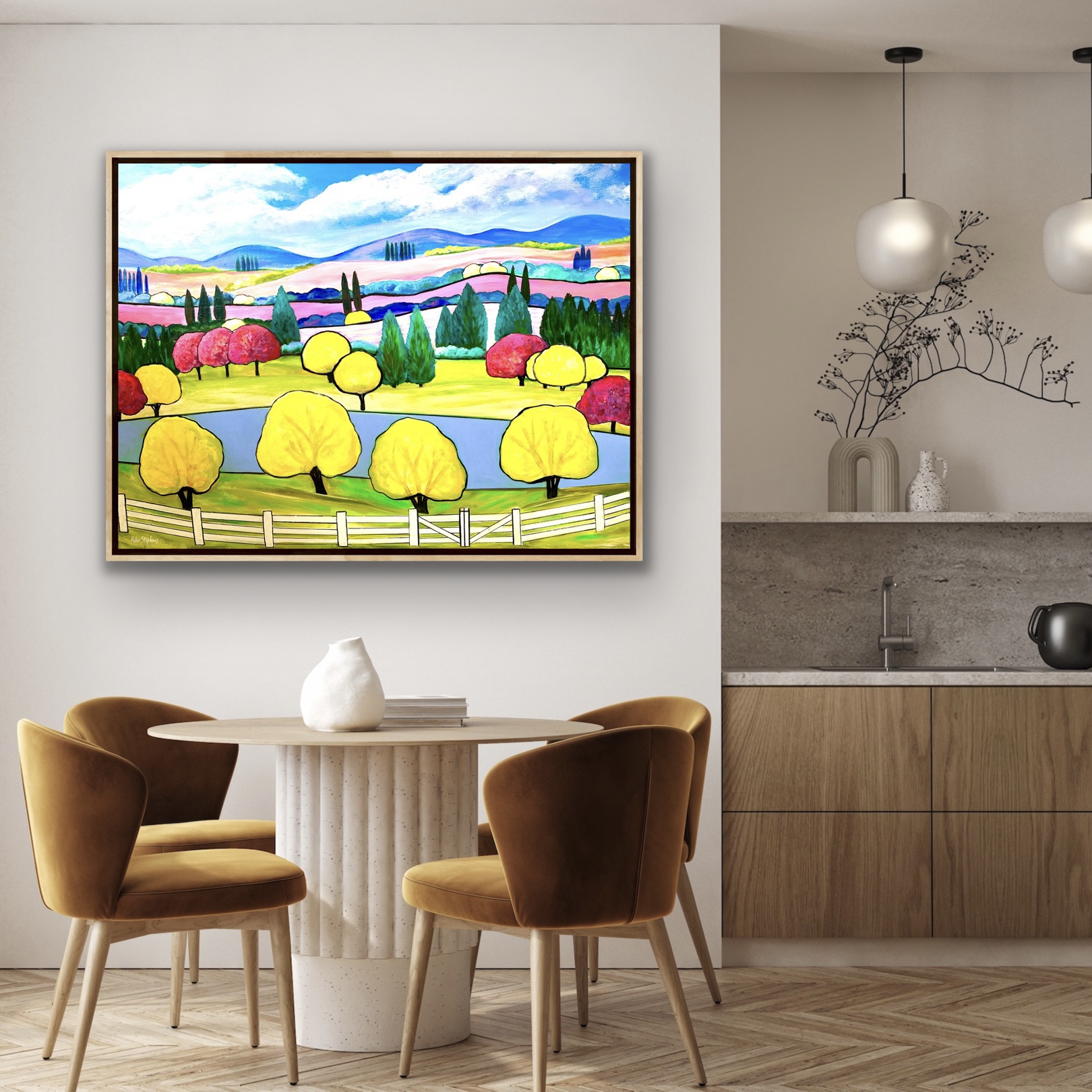 This artwork is next in my Green Gullies Series of original abstracted landscape paintings to add that touch of sunshine and Australiana to your wall at home!