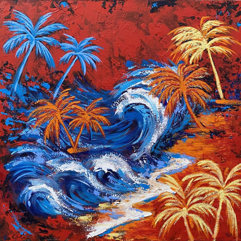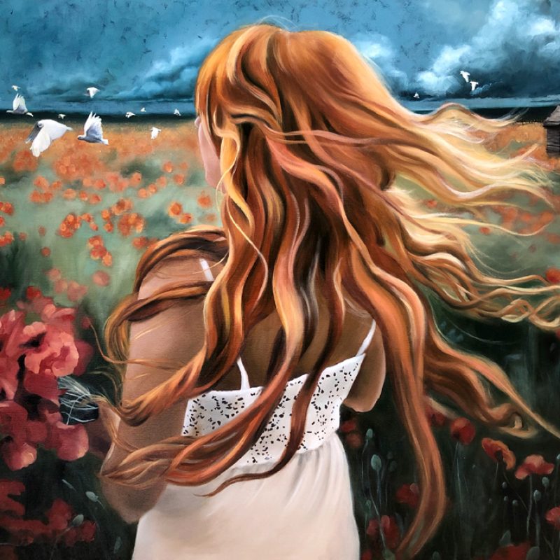Acrylic and charcoal on canvas, sealed with uv protective varnish.