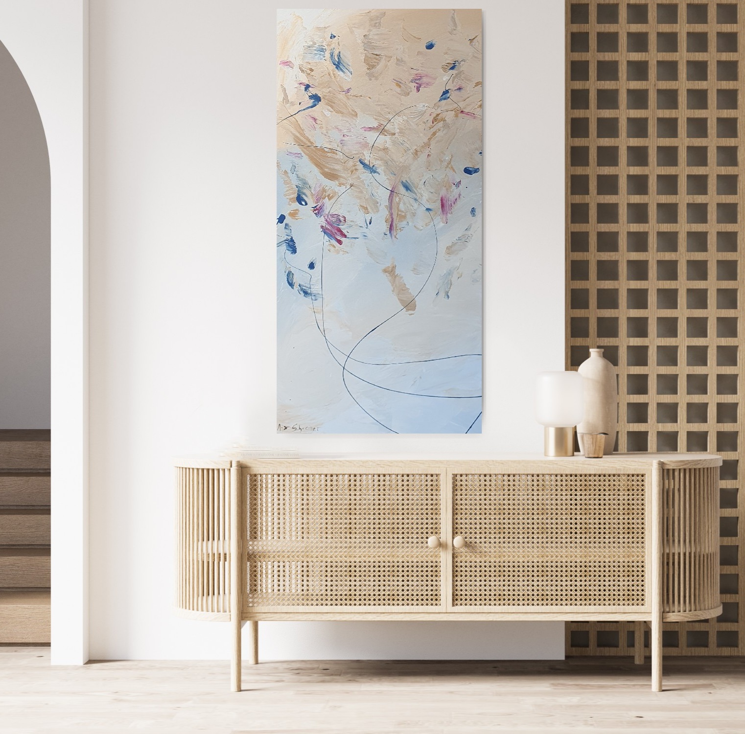 I view painting as sheer passion and feeling. Through my process I don’t seek to depict a set idea or subject, but instead I let scenes and dynamic movement emerge organically.