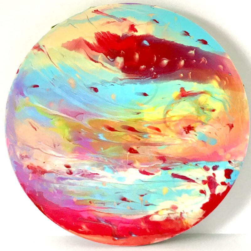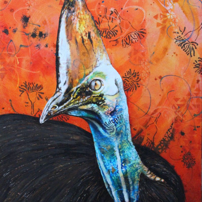 This painting is on good quality canvas and a wooden support stretcher frame. It has mixed media with- texture gel, glue, acrylic inks, acrylic paints and oil. Then it is varnished with artist quality varnish.