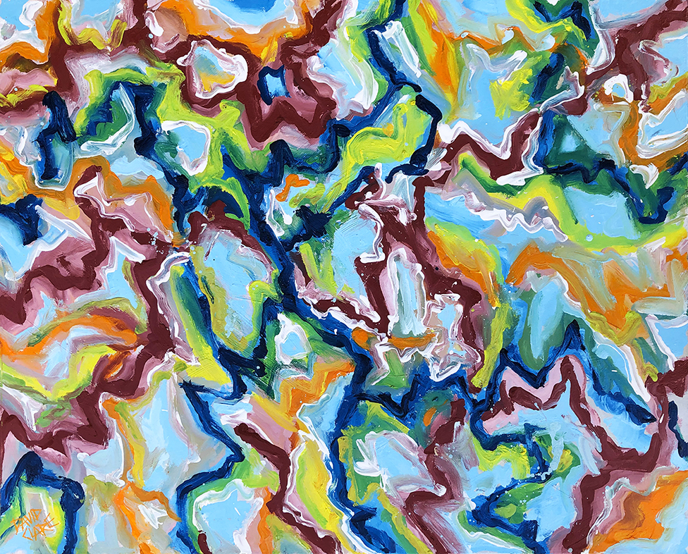 The 4th in my series of appreciation for Indigenous Australian Artists, and Australia itself. This one is sharper, and and more rugged than the first three of the series, yet more vibrant. Signed on the front.