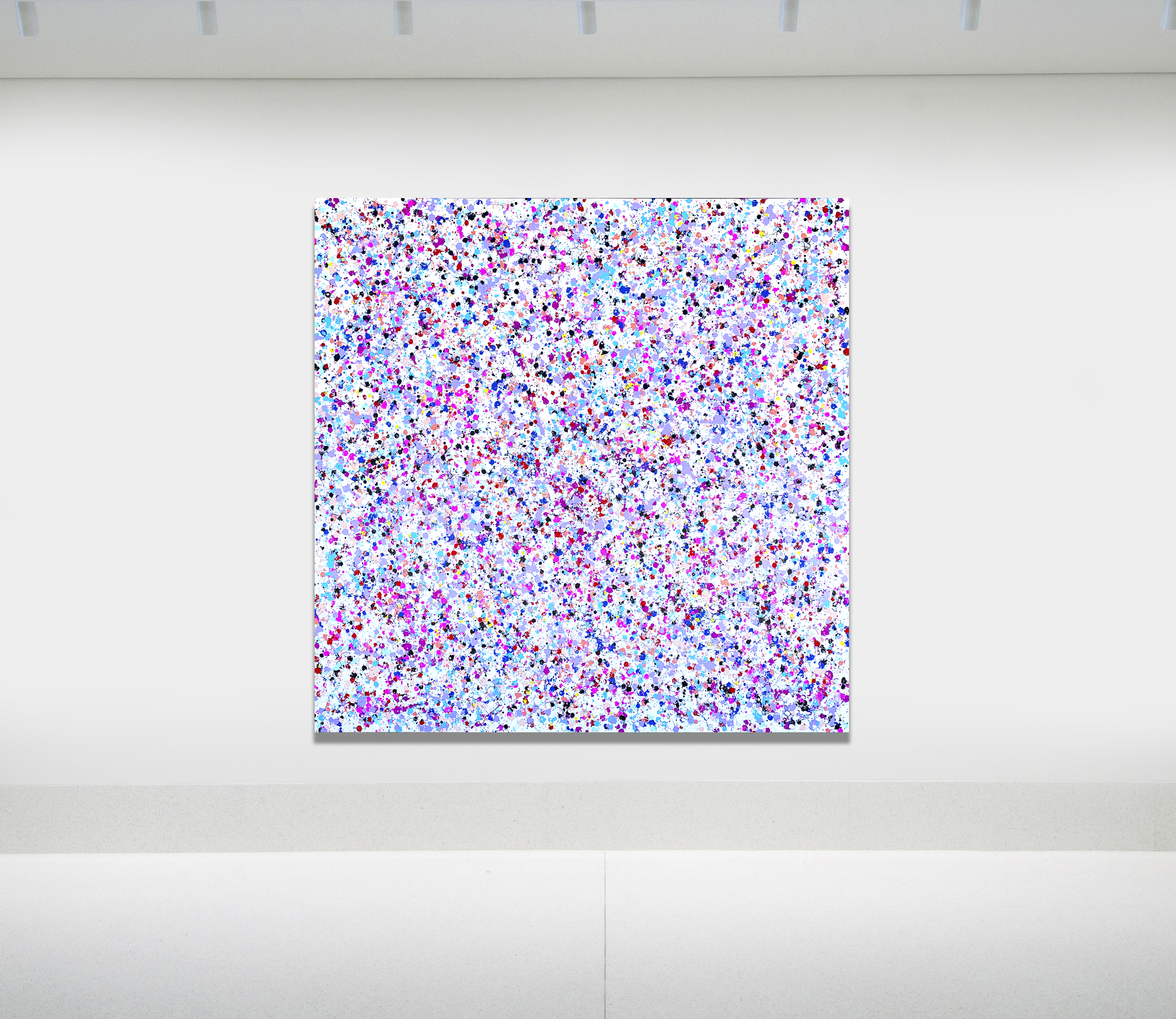 This work is painted on professional-grade canvas and has been sealed with varnish. The canvas has dimensions is 165 cm in width by 165cm in height. The sides are painted white, so there is no need for a frame.