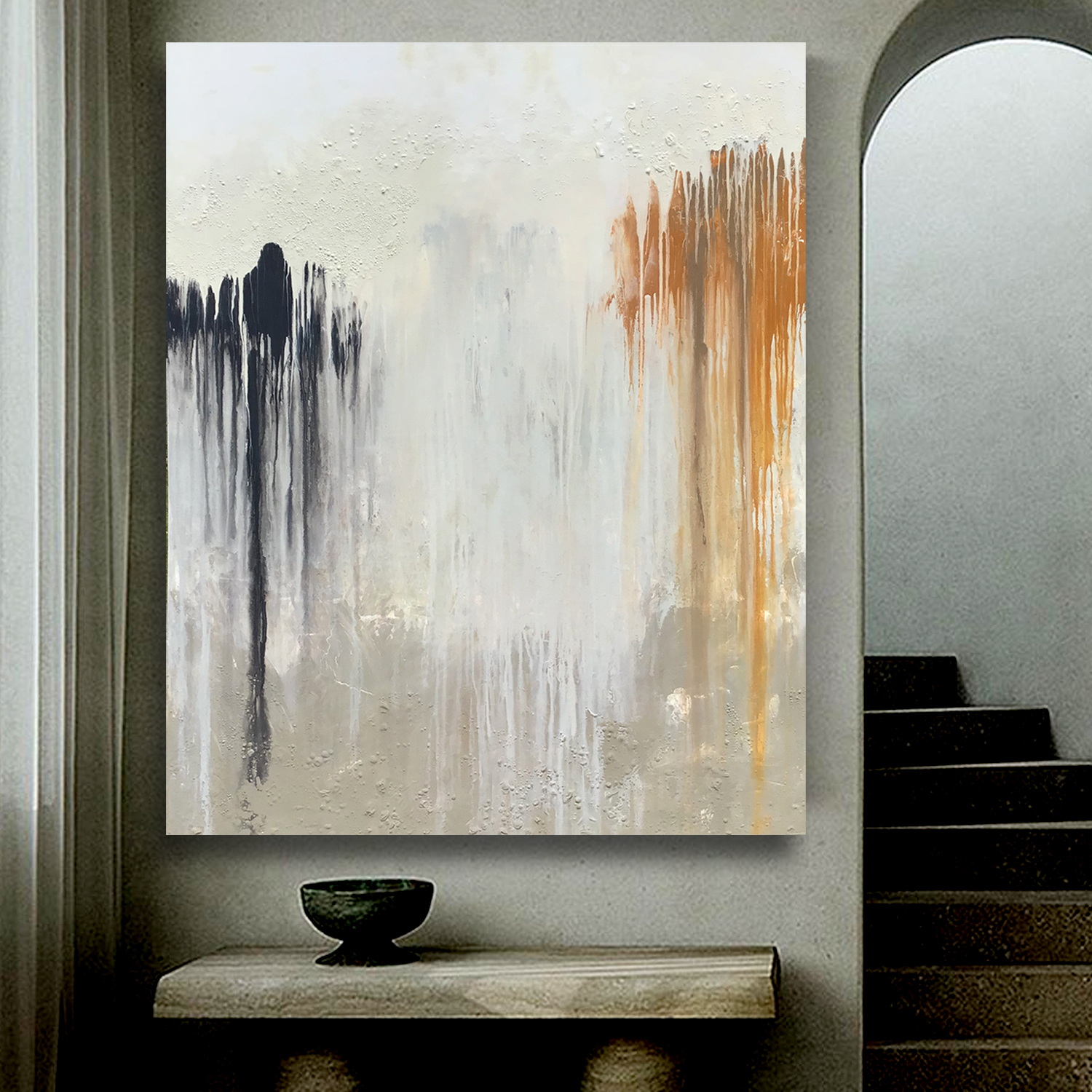 When working on this canvas I had in my mind to create an abstract keeping to the neutral tones, which I did. Once in the final stages I decided it needed to have some drama and tried adding a ‘pop’ of colour with a splash of cherry red…..disaster! It dramatically took away from the feel of the piece and did not enhance it at all, so I quickly had get to work and clean it off to get it back to its original glory, hence the title.