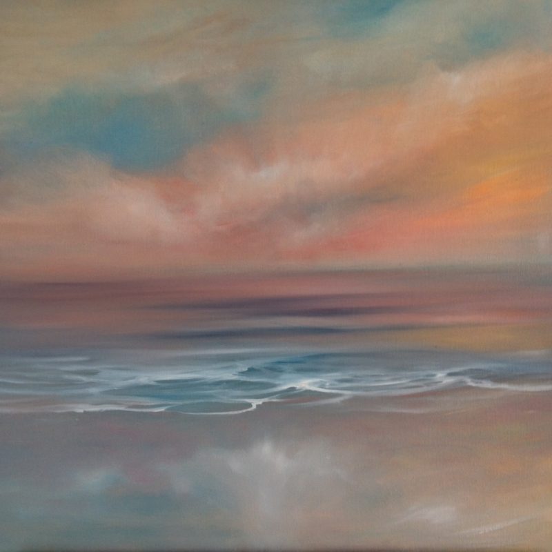 It’s intriguing mark making combined with its restful and calm palette of white, beige and beautiful apricot orange, peach and neutral tones mixed with hints of light green, dark olive green, grey and blue, along with subtle line work.