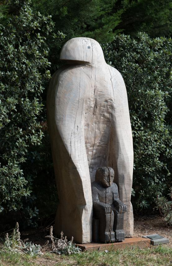 One of Australia’s most acclaimed sculptors, Melbourne-based Bruce Armstrong is best-known for his monumental totemic figures which can be seen in public spaces around the country. Often hewn from massive pieces of red-gum, his birds, beasts and figures have a raw energy which assert a commanding presence and engage directly with the viewer.