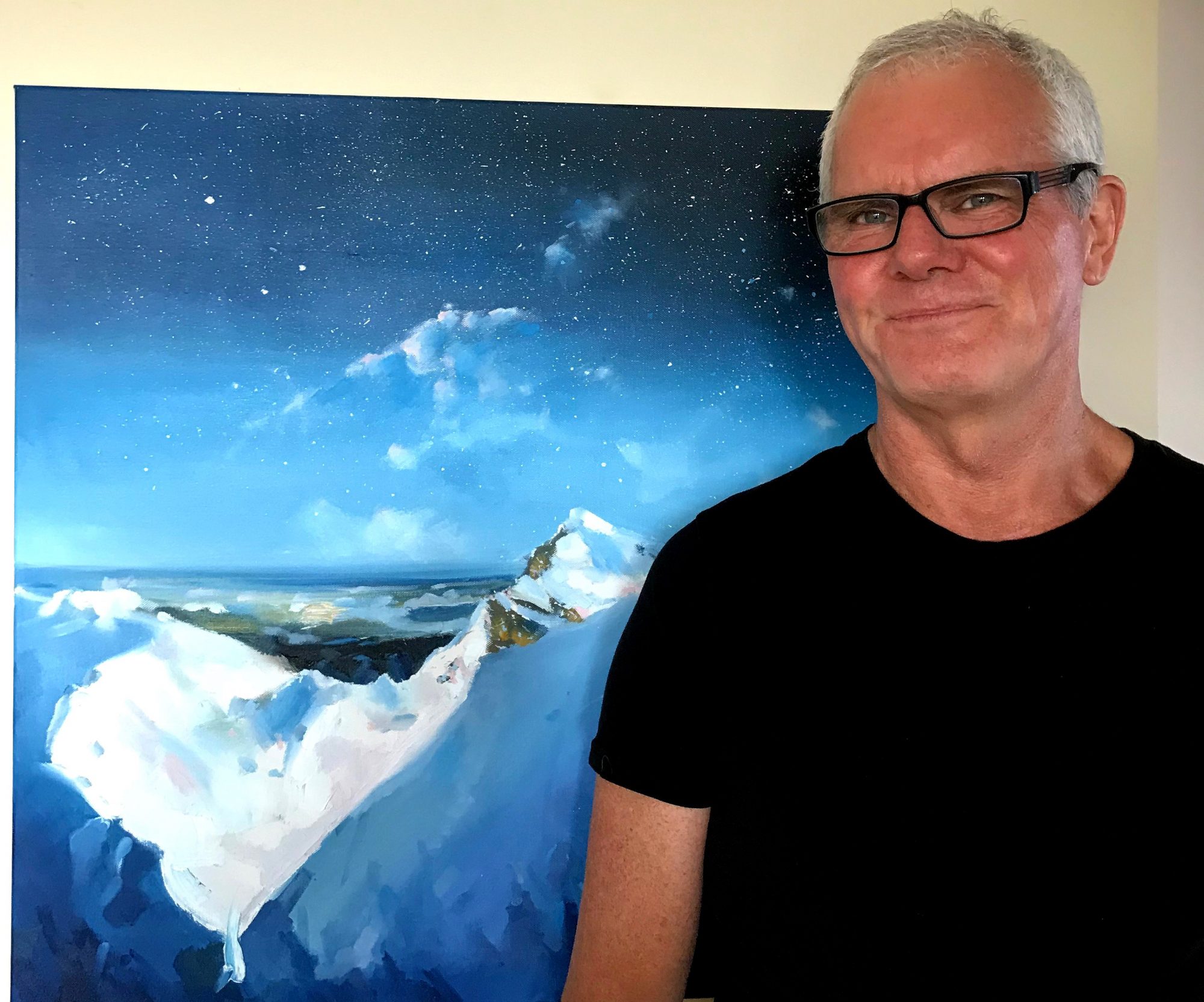 One of the striking elements in his paintings is the attention to detail. The energy that he applies to specific part of the painting is captivating. The starry sky in his mountain scapes, the whitewash in the waves, the kangaroo paw or the detail in the mountain toucans bill. We get to follow his gaze, get a glimpse of his connections to the subject matter and maybe even get to share his experience. “As artists, we constantly study and observe. My construction is mainly intuitive. Composition is not laboured but central to the physical and the spiritual. I strive for my marks to be spontaneous and purposeful.”